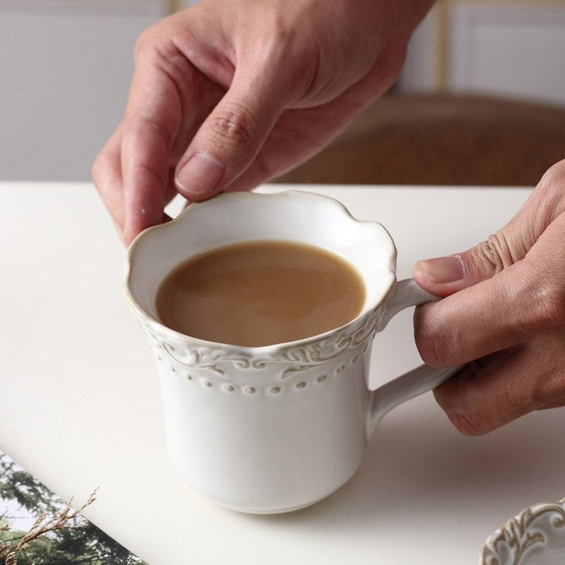 This retro relief ceramic tableware collection features elegant Western-inspired designs with intricate handcrafted patterns along the rims. Crafted from high-quality ceramic, each piece showcases delicate floral and vine motifs paired with beaded detailing, offering a timeless vintage aesthetic. The sturdy, high-temperature fired ceramic ensures durability and easy cleaning, while the subtle white finish complements both casual meals and formal feasts. Ideal for pasta, soups, desserts, or salads.