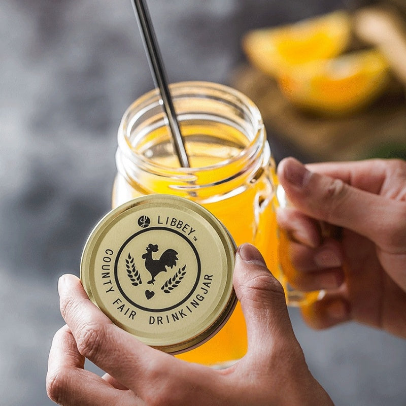Introducing the Retro Style Glass Transparent Water Cup, perfect for enjoying juice and coffee. This charming cup features a classic mason jar design with a sturdy glass handle and a elegant brass-colored lid, adding a vintage touch to your drinkware collection. The included stainless steel straw enhances convenience and eco-friendliness. With a generous 485ml capacity, it's ideal for both hot and cold beverages. A delightful blend of style and functionality!