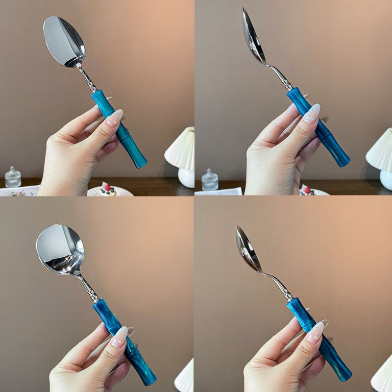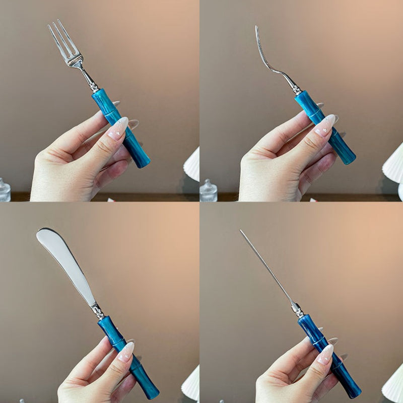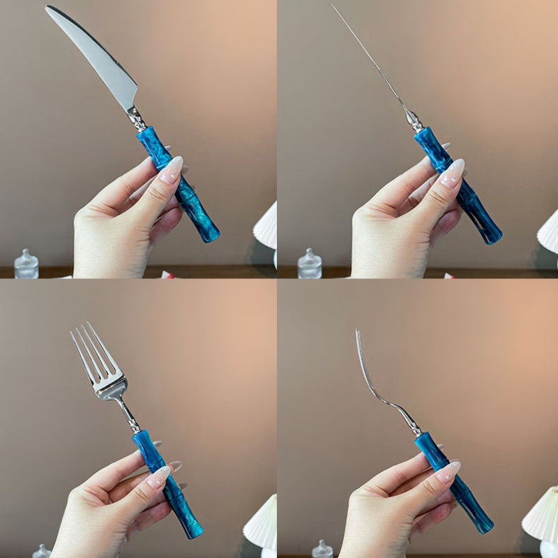 Stainless Steel Vintage Pearlescent Bamboo-Joint Handle Western Tableware Set